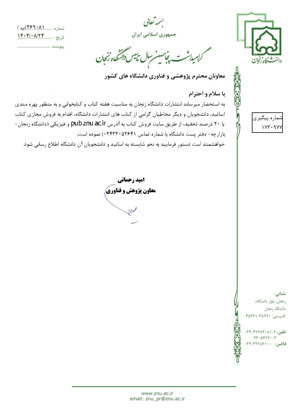 تخفیف 20 درصدی کتابهای دانشگاه زنجان به مناسبت هفته کتاب و کتابخوانی
