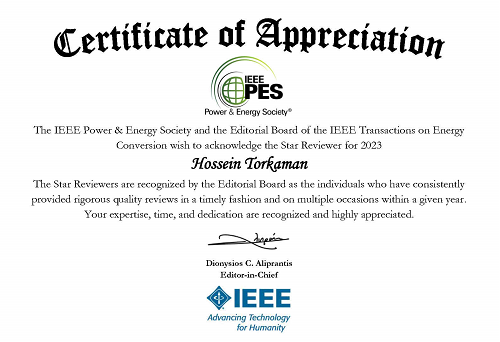 انجمن مهندسان برق و الکترونیک امریکا (IEEE) شاخه برق و انرژی (Power and Energy Society)، هرساله از بین داورانی که با مجلات همکاری دارند تعدادی را به عنوان داور برجسته (Star Reviewer) انتخاب می کند.