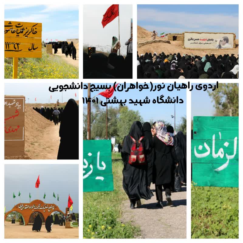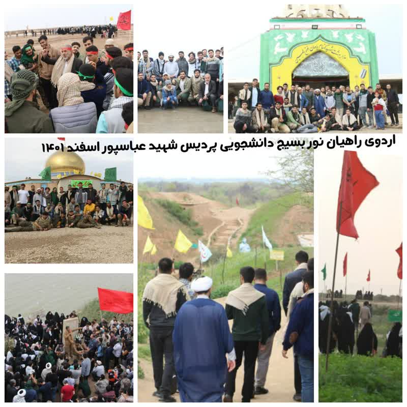 اردوی راهیان نور به همت بسیج دانشجویی دانشگاه شهیدبهشتی و پردیس شهید عباسپور با حضور بیش از ۲۵۰ نفر از دانشجویان در تاریخ ۱۵ الی ۲۰ اسفند برای برادران و از ۲۰ الی۲۴ برای خواهران برگزار گردید. دانشجویان در طول ۴ روز به بازدید از یادمانهای شهدا از جمله شهید باقری، شهید چمران، کانال کمیل و هویزه، طلائیه، شلمچه، پاسگاه زید، اروند رود و مسجد جامع خرمشهر و همچنین بازدید از نمایشگاههای تجهیزات نیروی دریایی سپاه پرداختند.