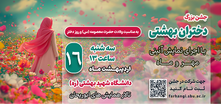 به مناسبت سالروز ولادت حضرت فاطمه معصومه (س) و روز ملی دختر، جشن بزرگ «دختران بهشتی»، روز سه‌شنبه ۱۶ اردیبهشت‌ماه 1404 به همت معاونت فرهنگی و اجتماعی دانشگاه، در فضایی صمیمی، پرنشاط و سرشار از شور دانشجویی برگزار شد.