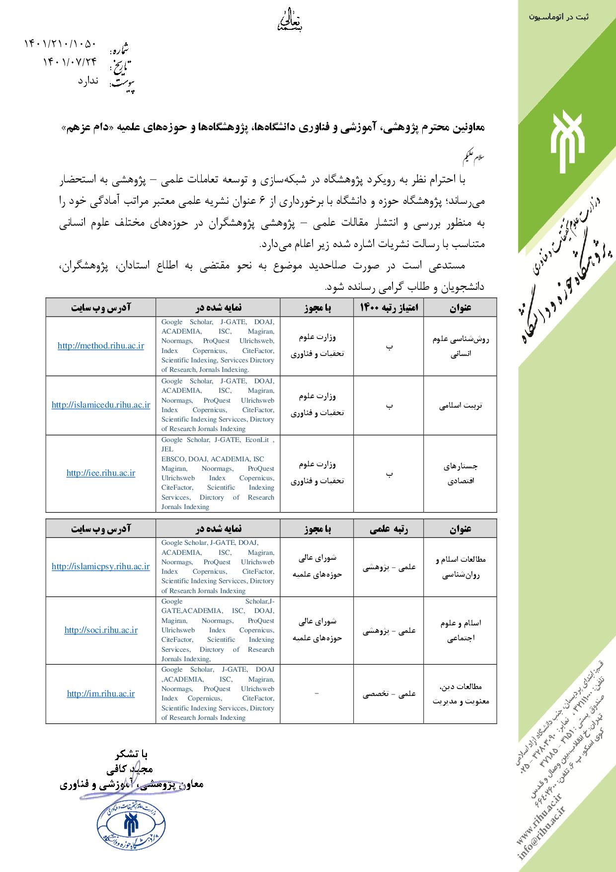 | 32 | مرکز تحقیقات سیاست علمی کشور | پنجمین ویژهنامه رهیافت | فایل / پیوست |