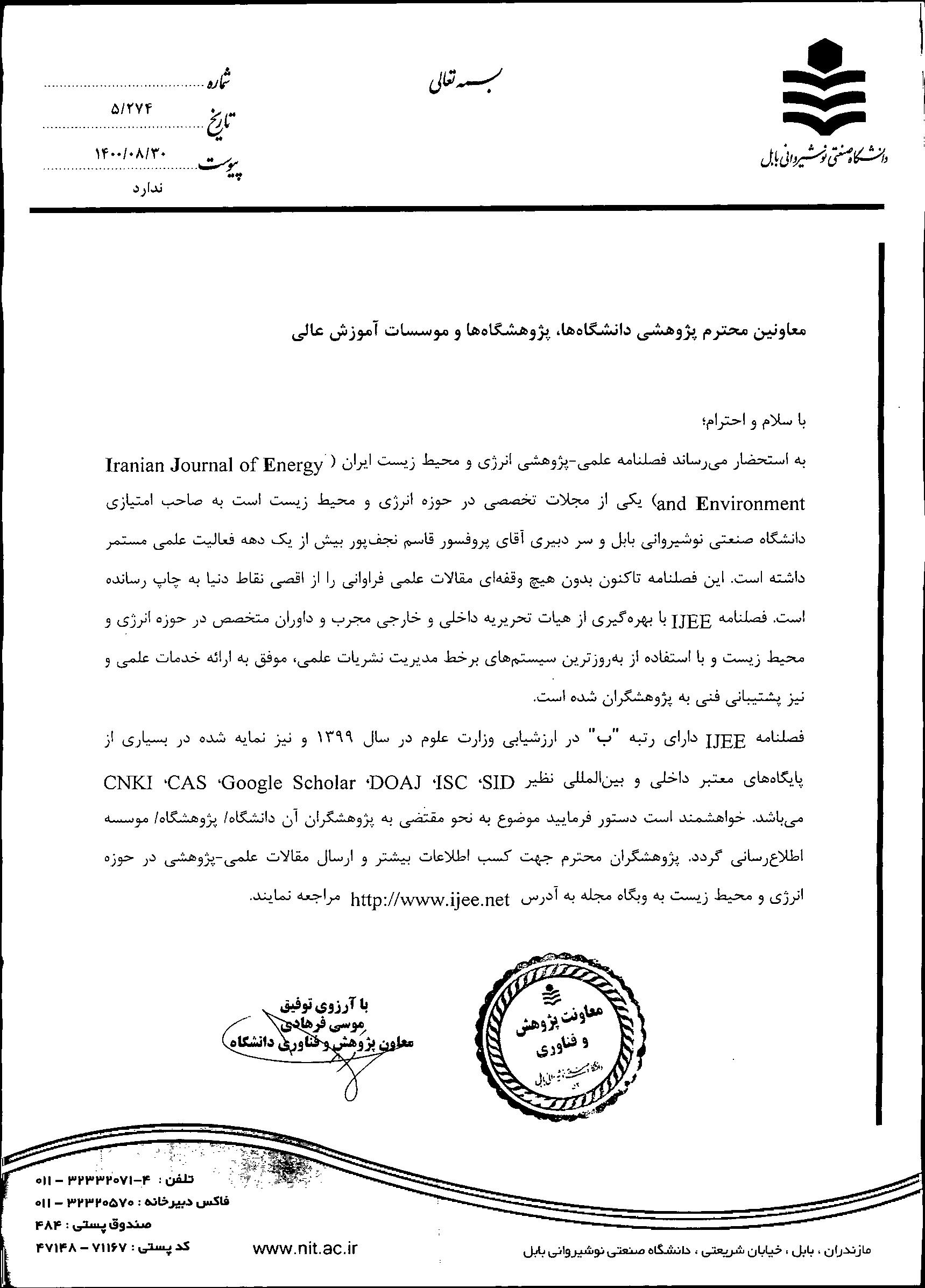 فصلنامه علمی و پژوهشی انرژی و محیط زیست ایران